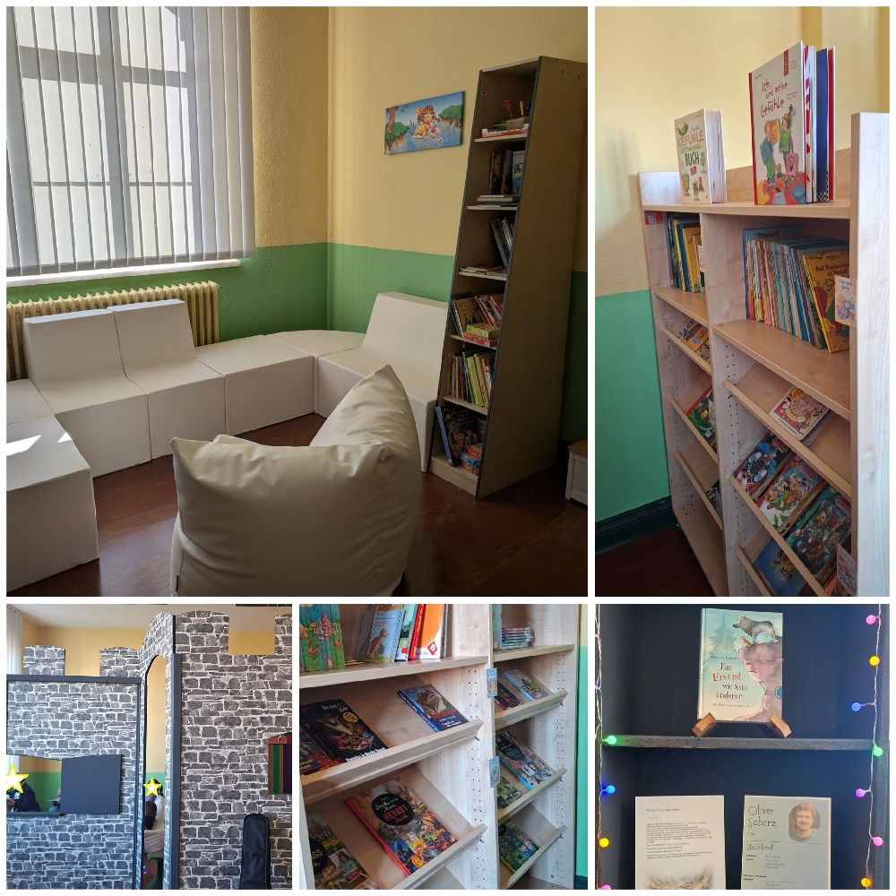 Ab sofort gibt es in unserem Hort ein neues Leseangebot: unsere Leseburg. Sie ist eine kleine Kinderbibliothek und bietet den Kindern einen gemütlichen Rückzugsort, an dem sie in Ruhe lesen, in spannende Geschichten eintauchen und ihrer Fantasie freien Lauf lassen können. Die angenehme Atmosphäre lädt dazu ein, Bücher zu entdecken und sich Zeit für lustige, spannende oder auch nachdenkliche Geschichten zu nehmen.