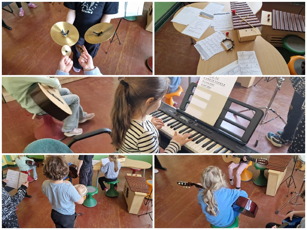 Ob Gitarre, Ukulele oder Keyboard – eine große Auswahl verschiedener Instrumente steht den Kindern zur Verfügung. Gemeinsam möchten wir die Freude am Musizieren wecken und das Interesse am Ausprobieren unterschiedlicher Instrumente fördern.